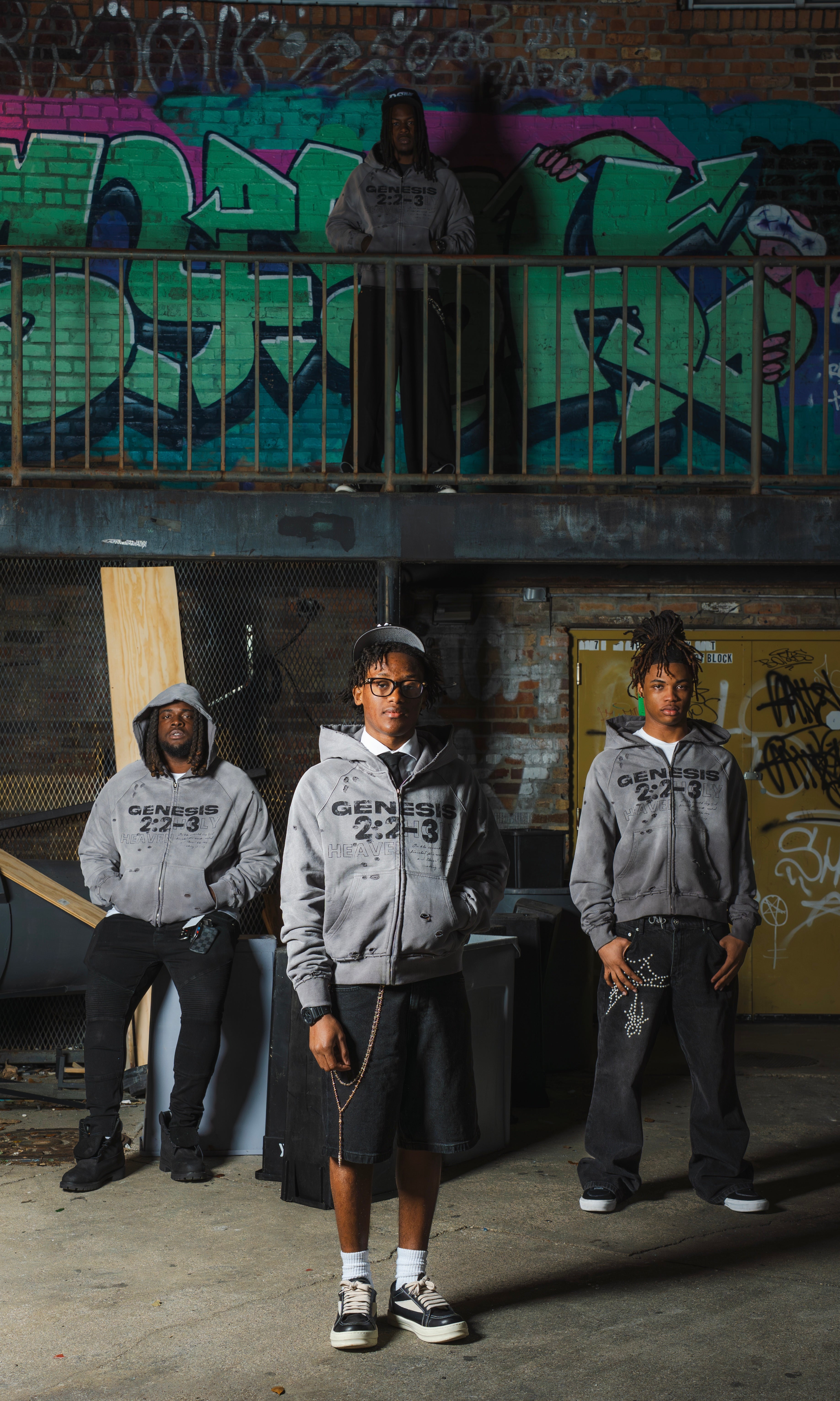 This hoodie features a washed-grey, vintage-distressed look with subtle bleach-style spotting throughout the fabric.